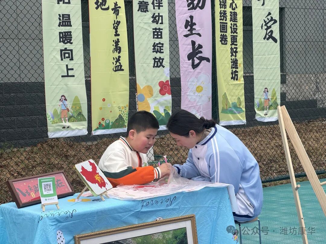 本次活动设置徒步闯关、百人画卷、星星手作义卖等多个环节。启动仪式上,学生为受邀领导和相关老师系上蓝丝带,以质朴行动传递纯真的欢迎与信任。活动现场,学生在教师引导下顺利完成徒步闯关、拍照打卡、绘画、手工制作等课程任务,家长则参与团队协作,形成家校社协同参与的良好氛围。整个活动以蓝丝带为情感纽带,串联起理解、陪伴与行动,春日暖阳下,蓝丝带随风轻扬,师生并肩而行、笑语不断,映照出教育最温柔的底色。在徒步闯关环节中,学生依次完成拍球、套圈、古诗竞答、拍照打卡等关卡,老师引导学生反复尝试,锻炼肢体协调与专注力,也通过真实场景中的互动体验,逐步建立自信与融入意识。在“我和春天有个约定”拍照打卡环节,老师引导学生手持风车,在园区绿植背景下完成合影,既强化了学生对场景与指令的理解,也促进了家校之间的即时互动与情感联结。课程实施中,老师根据学生能力差异灵活调整任务难度,确保每位学生都能在成功中获得正向反馈。在百人画卷环节,长长的画布铺展于阳光下,学生手持画笔,或专注涂抹,或与老师轻声交流,描绘出蓝天、彩虹、花朵与美好的祝愿。现场氛围融洽,孩子们在自由创作中释放情绪,也在集体作画中学习等待与协作。绘画将艺术表达与社会性发展自然融合,既尊重学生个体的创作兴趣,又在共同完成一件作品中强化了规则意识。此次活动为学生提供了在真实社会场景中锻炼社交、表达与运动能力的机会,也进一步提升了公众对孤独症群体的认知与接纳。我校将以本次活动为契机,持续深化协同育人机制,创新实践课程“以活动促融合、以情境育能力”的融合特色,推动孤独症学生社会融入课程的常态开展,让更多孩子在实践中被看见,在爱与理解中走向更广阔的世界。