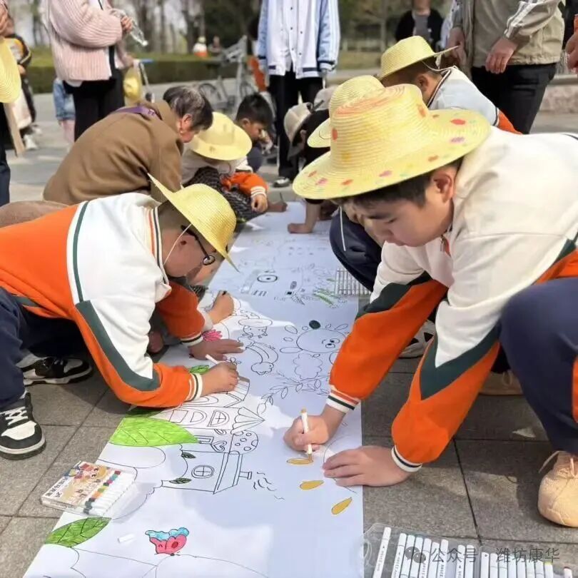 阳光明媚,处处充满生机。学生们在草帽上绘制春色,在浞河畔拾花入帽,在徒步中磨砺意志。教师全程包靠,家长协同参与,充分体现了家校共育的合力。活动不仅让学生在真实情境中提升了社会适应能力和集体意识,更在春日行走中实现了“润物细无声”的成长教育,为特殊需要学生的综合素养提升提供了生动注脚。