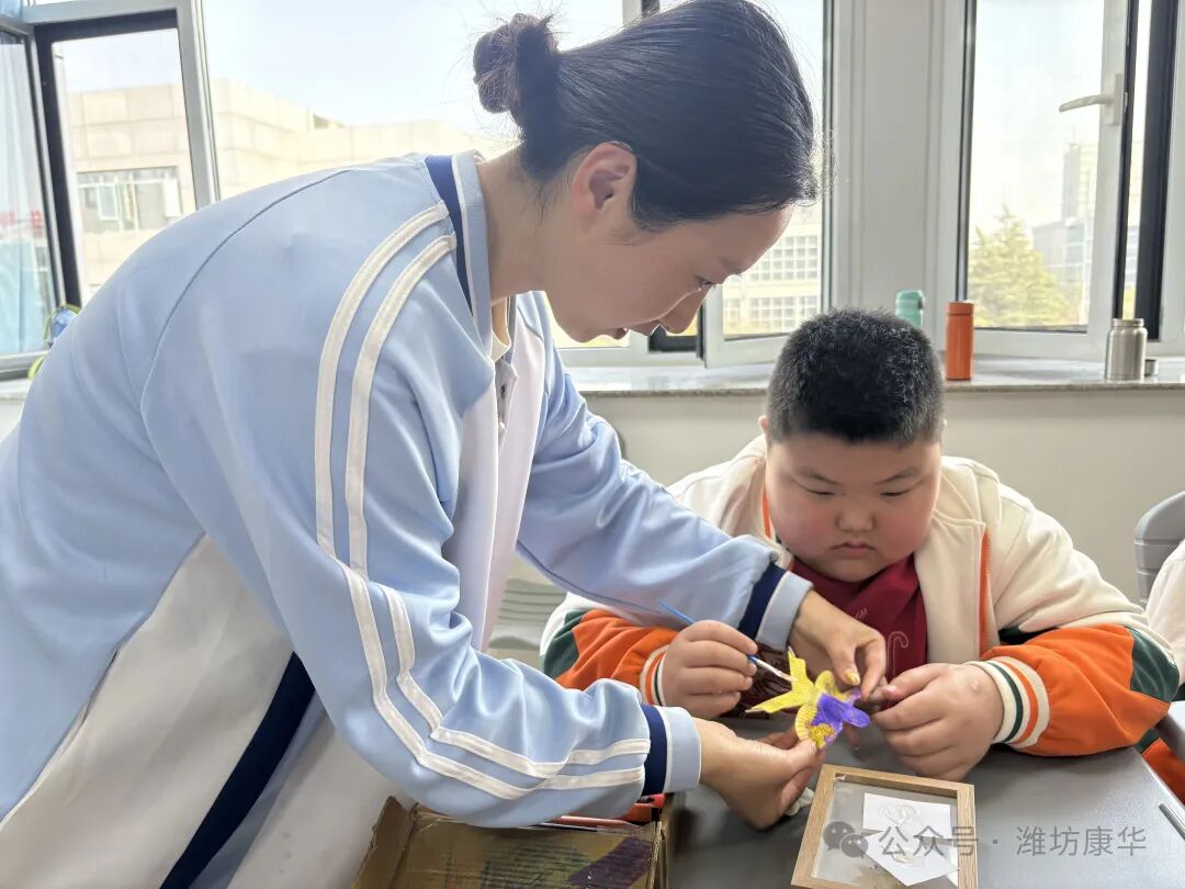 4月1日,在世界孤独症日来临之际,潍坊市党史教育馆志愿者来到我校,开展“爱满鸢都,牵手筑梦”主题公益关爱活动。同学们在党史馆工作人员与教师共同陪伴下,聆听潍坊风筝故事,体验非遗手作,通过涂色、组装、装裱小风筝,感受家乡文化魅力与社会各界温暖关怀。